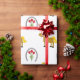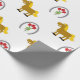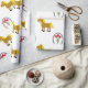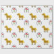 Papier d'emballage de jour de Kentucky Derby illustré avec des chevaux, des fers à cheval et des roses rouges sur le blanc.