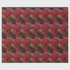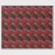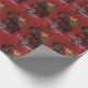Papier d'emballage comportant Krampus sur un fond rouge emportant les enfants vilains pour la punition.