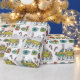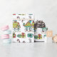 Les maisons de vacances et les cadeaux tirés par la main heureux ornent ce papier d'emballage lunatique.