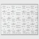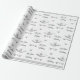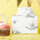 Magnifique papier d'emballage de mariage Cœurs et cloches d'argent avec une image de cloches de mariage argentées et de rubans avec des cœurs argentés sur fond blanc. Le texte personnalisable indique « On Your Wedding » et est affiché dans une police argentée élégante. Une doublure argent et blanc est présente sur les bords du design.