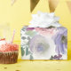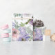 Un joli assortiment de fleurs violettes, roses et bordeaux sur fond gris clair est l'emballage cadeau de mariage parfait que votre mariée aimera