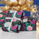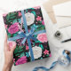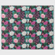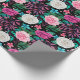Des roses blanches, roses et bourgeon sur un fond noir est le papier cadeau de mariage parfait que votre mariée aimera.