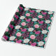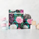 Des roses blanches, roses et bourguignon sur fond noir est le papier cadeau de mariage idéal que votre mariée aimera.