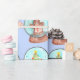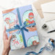 Papier d'emballage bleu Noël enneigé de Noël Papier d'emballage parfait pour les vacances à envelopper vos cadeaux dans. Montre différentes boules de neige telles que père Noël et Christmas Tree