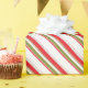 Enveloppez vos cadeaux avec style avec ce beau papier d'emballage de noël avec des motifs colorés rouges, verts et blancs rayés.