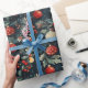 Un design riche et coloré présente des ornements, des saints et des baies contre un arrière - plan sombre, parfait pour envelopper les cadeaux et répandre la joie des vacances pendant la saison festive.