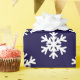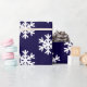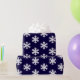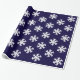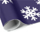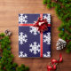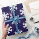 Papier d'emballage de Noël avec un motif de grands flocons de neige blancs sur un arrière - plan bleu-foncé.
