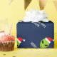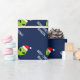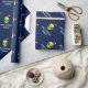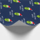Papier d'emballage de Noël étranger drôle du père noël pour des femmes et des enfants des hommes. Tête étrangère verte portant un giftwrap de casquette de Père Noël personnalisé avec la salutation et le nom de seaspns. La conception drôle d'enveloppe de cadeau d'UFO pour des vacances présente. Faites un pour le fils, petit-fils, nouveau bébé, petit-enfant. Illustration extraterrestre de bande dessinée de l'espace de la vie pour des enfants (garçons/filles) et des adultes. Bleu fait sur commande d'IE d'arrière - plan de couleur.
