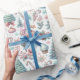 Ce papier d'emballage gai présente des motifs fantaisistes de Noël, y compris des arbres décorés, des ornements et des sucres de canne, parfait pour offrir des cadeaux de vacances et de la fête.