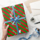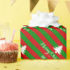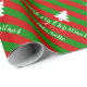Nom personnalisé et salutation Joyeux papier d'emballage d'arbre de Noël. Papier d'emballage de Noël à rayures rouge et verte motif à rayures mignonnes emballage cadeau design pour Noël Fête présente imprimé cadeau de Noël avec des lignes en diagonale. Couleur arrière - plan personnalisable. Élégante typographie de script.
