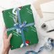 Papier d'emballage de Noël Monogrammed pour chapeau santa personnalisé, Texte personnalisable pour Joyeuses Fêtes personnalisés et nom. Couleur arrière - plan verte personnalisable et texte élégant pour vos souhaits ou note. Surprenez vos amis et votre famille pendant les vacances. Joli modèle de monogramme de chapeau de Père Noël personnalisé pour la fête de Noël. Convient aux hommes, femmes et enfants. La typographie moderne. Couleurs vert rouge et blanc.