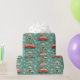 Papier d'emballage de Noël joyeux avec des voitures rouges portant des arbres et des cadeaux, présentant un design fantaisiste parfait pour les cadeaux et les fêtes de fin d'année.