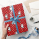 Conception avec illustration mignonne petit panda avec casquette Père Noël, vacances de Noël design pour enfants, sur arrière - plan avec motif rouge sans soudure avec étoiles