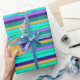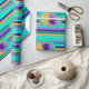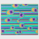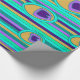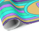 Papier d'emballage recyclable et brillant dans un 2' x 6' petit pain avec une conception de plume de paon dans pourpre, vert, la turquoise et l'or.