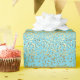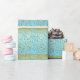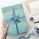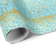 Le papier d'emballage est montré en turquoise avec une vapeur de mini étoiles D'or-colorées formant des rayures imprimées partout.