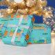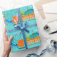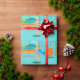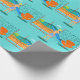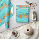 Chaque jour peut être un jour à la plage avec ce papier d'emballage de rétro type de surfer. Le style des années 1960, caractéristiques de conception minimalistes d'art soleil-embrassé, blond, type de surfer tout prêt à attraper une vague. Notre surfer d'ajustement regarde fixement sur l'océan par les portes en verre de glissement de sa maison du front de mer. Il se tient dans son salon coloré par aqua. Nous pouvons voir un aqua et une turquoise, le mur en pierre et la moitié du siècle modernes, chaise orange. Du bord opposé de la porte en verre, nous pouvons voir un patio. Au delà de cela, il y a une plage d'or et sablonneuse, un palmier de balancement, un scintillement, un océan de bleu de paon, et un ciel d'aqua. Dans la distance, nous pouvons voir une île volcanique turquoise, qui est dormante pour l'instant. Le type de surfer tient une planche de surf bleue et un bleu de port, des shorts de conseil modelés par tiki. Attrapez quelques vagues et partagez un certain amour avec cette conception kitschy d'été !