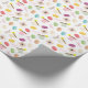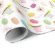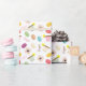 Papier d'emballage comportant un motif orienté de nourriture française des macarons, des tasses de thé, des fleurs d'anémone, et du "Bonjour !"