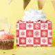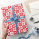 Ce papier d'emballage cadeau de vacances est présenté dans un design festif d'impression de flocon rouge et blanc. Matte montré Personnaliser ce papier ou acheter tel quel. Image stock freepik.com