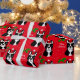 Papier d'emballage de chien drôle de Boston Terrier pour la saison des vacances. Rouge de Noël et motif de flocons de neige. Vous pouvez customiser le texte et plus ! Bande dessinée unique et lunatique de chien créée par Naomi Ochiai du Japon.