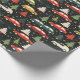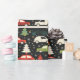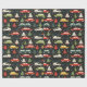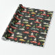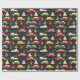 Ce papier d'emballage gai présente des voitures colorées ainsi que des arbres de Noël décorés, le tout dressé contre un arrière - plan noir. Parfait pour ajouter une touche festive aux cadeaux de vacances.