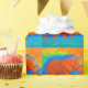 L'éléphant orange lumineux marche à travers le papier avec des couleurs lumineuses l'entourant