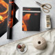 Ce papier d'emballage dépeint l'énergie du feu dans un fourneau brûlant en bois. L'orange, l'or et les flammes jaunes apparaissent en tant que caractères joyeux de danse. Ils sont placés par un arrière - plan noir.