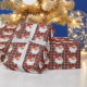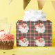 Le papier d'emballage coloré avec des visages joyeux du Père Noël sur un arrière - plan plaid vibrant apporte la joie des vacances, parfait pour les cadeaux pendant la saison de Noël.