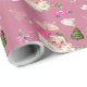 Papier d'emballage aux couleurs vives orné de motifs fantaisistes comme Père Noël, cadeaux, arbres et ornements, parfait pour ajouter une gaieté festive à tout cadeau pendant la saison de Noël.