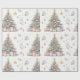 Un beau papier d'emballage présente un sapin de Noël décoré, avec des ornements colorés, des cadeaux et des motifs de vacances délicats, évoquant un esprit festif chaleureux parfait pour la célébration.