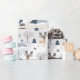 Ce délicieux papier d'emballage présente un design fantaisiste orné de cerfs ludiques dans un paysage hivernal. Entourée d'arbres stylisés et de montagnes enneigées, la scène joyeuse capture l'esprit des vacances, rendant chaque cadeau enveloppé dans elle vraiment spécial pour la saison festive.