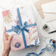 Cadeau Papier d'emballage floral rose pastel et bleu mari