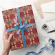 Cadeau Papier d'emballage floral rouge or moderne