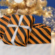 Bande d'Halloween en noir et orange personnalisée rouleaux de papier d'emballage. Ajoutez votre propre salutation personnalisée, message et nom. Conception d'enveloppes-cadeaux à rayures pour cadeaux et faveurs. Festive fournitures, décorations et accessoires pour adultes et enfants. Changez la quantité pour obtenir le prix en vrac le moins cher.