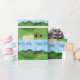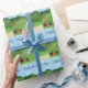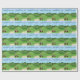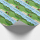 Ce papier d'emballage jouant au golf sportif de fête des pères comporte un arrière - plan de terrain de golf avec un dessableur et le drapeau de golf, un chariot de golf rouge, un chariot de golf bleu tous les deux avec des sacs de golf. Le texte stylisé de poissons est fête des pères heureuse. Perfectionnez pour envelopper des cadeaux de fête des pères. Choisissez vos médias et taille de papier d'emballage.