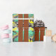 papier d'emballage maçonnique de Shriner dépeignant un shriner portant un petit enfant vers le haut des escaliers maçonniques symboliques