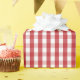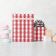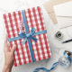 Un papier d'emballage a conçu avec un motif rouge foncé et blanc de guingan dans la taille moyenne.