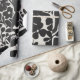 papier d'emballage spectaculaire avec un design floral noir et blanc. collage de fleurs noires sur un sol blanc.