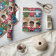 Ce design de papier d'emballage vibrant présente des garçons ados noirs immergés dans le plaisir festif, fabriquant leurs propres chandails de Noël "moches" fantaisistes. La scène, remplie de rires joyeux et de matériaux d'artisanat épars, incarne parfaitement l'esprit de vacances do-it-yourself projets ludiques. Idéal pour envelopper des cadeaux destinés à apporter des sourires et des souvenirs chéris.
