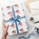 Un délicieux papier d'emballage présente un motif répétitif de visages joyeux de Père Noël, tous ornés d'un casquette rouge classique et d'un sourire ludique, parfait pour l'emballage cadeau de vacances.