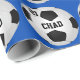 Papier d'emballage personnalisé du football avec votre TEXTE et COULEURS d'équipe. Introduisez dedans le NOM du footballeur et leur NOMBRE du Jersey ou leur MONOGRAMME ou supprimez-juste le. Voir les instructions ci-dessous sur la façon dont changer le TEXTE noir et les couleurs bleues d'ARRIÈRE - PLAN. Faites leurs cadeaux de Noël du football et cadeaux d'anniversaire du football et fin du football party des idées pour des footballeurs.