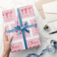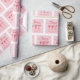 Élevez votre don en utilisant du papier d'emballage personnalisé qui comprend le nom de la future mariée et la date de son événement. Le design est dans une palette tendance rouge et rose avec un carré festonné, des éléments dessinés à la main de verres à cocktail, de cœurs et le mot "Cheers". Personnalisez le modèle avec vos détails de texte. © Kimbellished, LLC