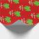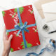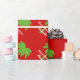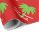 Papier d'emballage motif Joyeux Noël personnalisé Tropical Holiday design avec joli imprimé vert et rouge palmier. Couleurs de Noël mignonnes et typographie élégante.