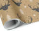 Ce délicieux papier d'emballage présente un motif fantaisiste aux silhouettes noires de rennes ornées de majestueux bois contre un arrière - plan terreux et chaleureux.