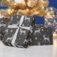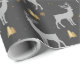 Ce délicieux papier d'emballage présente un motif fantaisiste de cerfs élégants, des flocons de neige étincelants et des arbres dorés gais, le tout dressé contre un riche arrière - plan sombre.