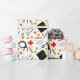 Papier d'emballage créatif pour cadeau de médecin pour la célébration de la remise des diplômes de l'école de médecine avec fournitures de soins de santé et chapeaux de remise de diplôme.