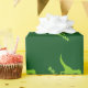 Papier d'emballage dinosaure vert mignon personnalisé avec nom enfant. Jolie préhistorique t rex cadeau envelopper design pour petits garçons 1er anniversaire fête, baby shower, noël etc. Faites un pour fils, petit-fils, nouveau bébé, petit-enfant, nouvelle mère, mère à être, nouveau-né enfant etc. Wild préhistorique t-rex dessin animé animal pour enfants. Drôle Tyrannosaurus rex.