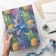 Motif audacieux de l'ananas tropical avec un travail de pinceau pictural dans des pourpres, des roses, des jaunes et des verts vibrants sur un fond pourpre foncé. Ce design accrocheur présente des ananas surdimensionnés avec des frondes luxuriantes dans un style artistique, presque impressionniste. Parfait pour les célébrations estivales, les thèmes tropicaux et tous ceux qui aiment les motifs de fruits lumineux et joyeux.