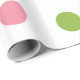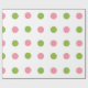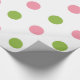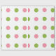 Papier d'emballage blanc avec le grand pois de rose vert pomme et saumoné