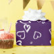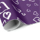 Papier d'emballage violet avec cœurs blancs.