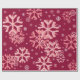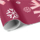 Ce papier d'emballage de Noël est présenté sur un arrière - plan de Bourgogne avec des flocons de neige imprimés dans différentes tailles, de super grand à plus petit dans un doux Carnation rose, rose pâle et blanc. Sur du papier glacé. Customisez ce papier ou achetez tel quel.